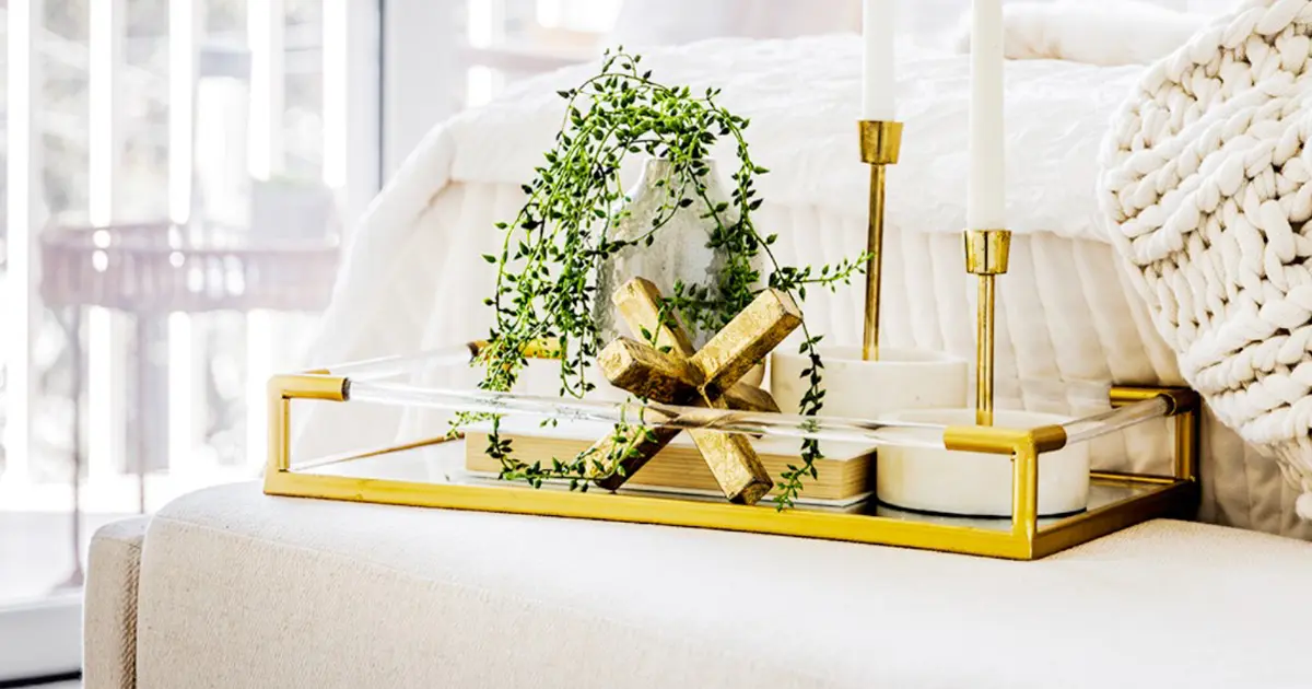 When you think of dressing a bed it’s easy to run through the list of things that go on it. Sheets, duvets, pillows, decorative pillows, and throws. But have you ever considered the beauty and usefulness of a serving tray adorned with items that conduce relaxation and promote healthy bedtime habits?